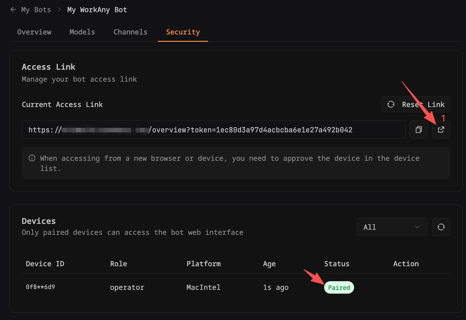 等到设备状态为 "已配对" 后,再次打开机器人网页版访问链接。