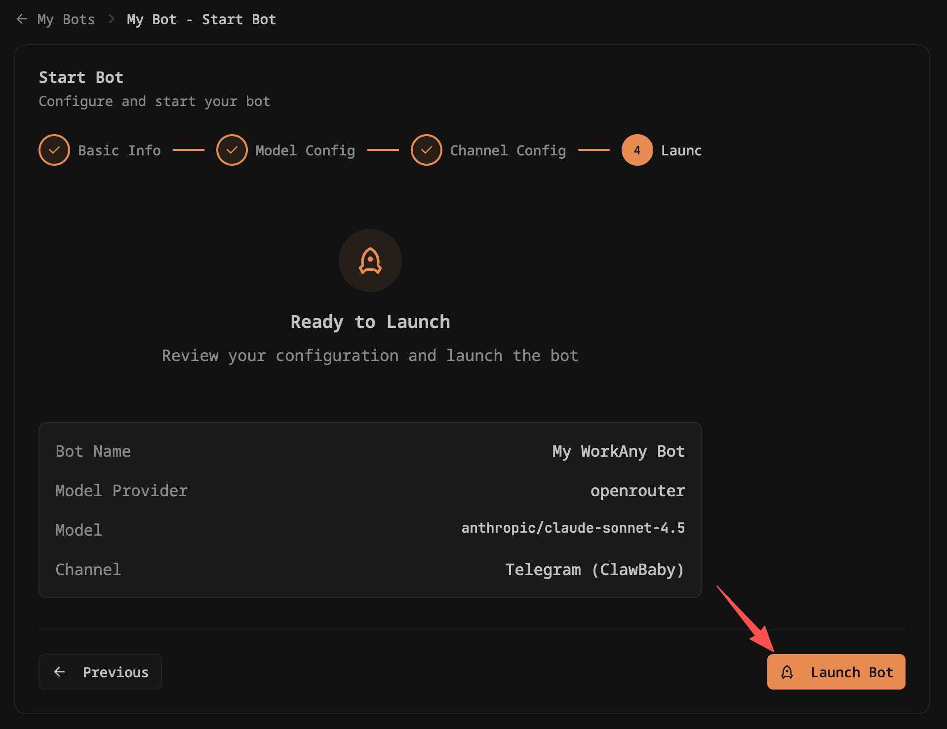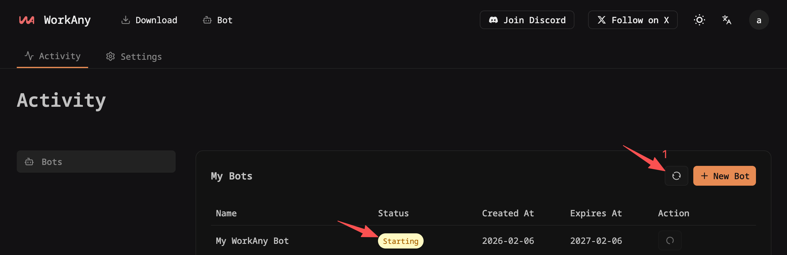 按照以下步骤快速创建你的 WorkAny Bot。