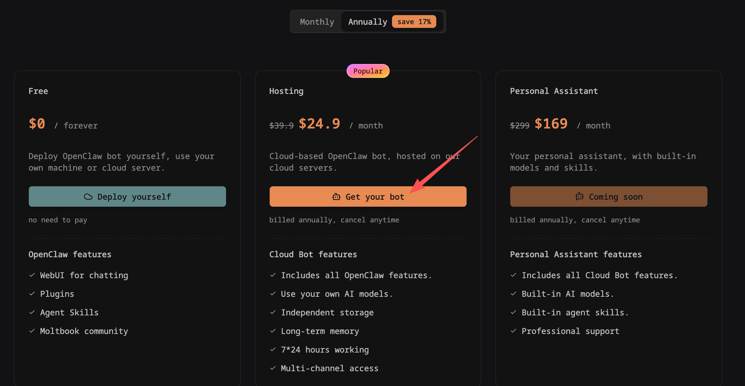 WorkAny Bot 是一个云端的 OpenClaw 智能体,随时随地为你服务,7*24 在线。